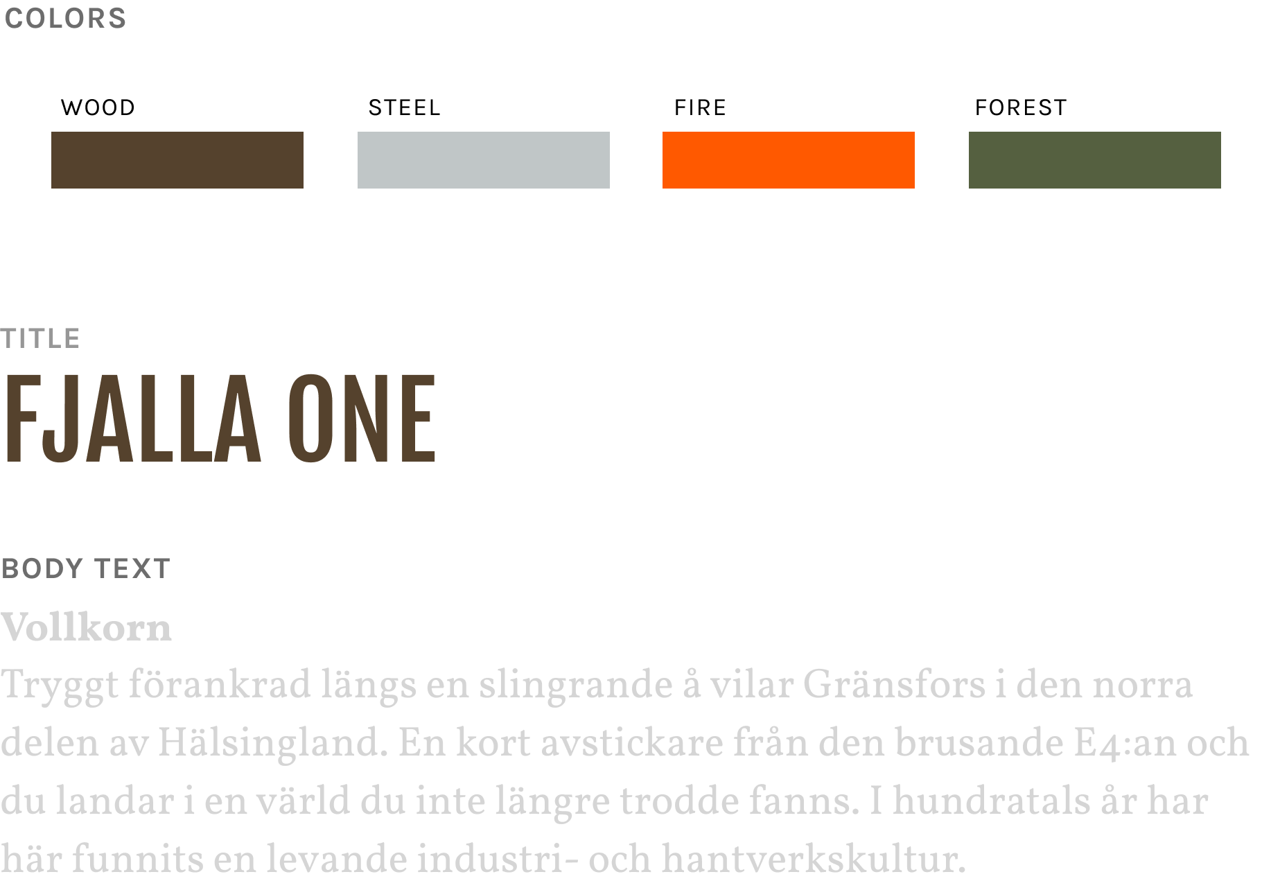 Gränsfors Bruk had a very basic brand manual with no established colors and only one basic font. So I selected a complementary font for titles, a new font for body text and some colors that matched their identity.